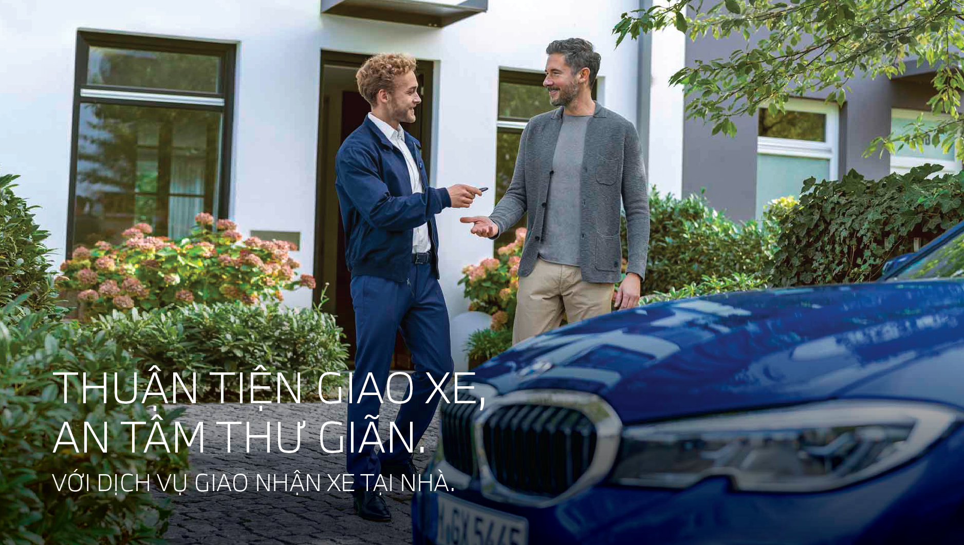 Khi quý khách có nhu cầu cần kiểm tra, bảo dưỡng định kỳ hay sửa chữa chiếc xe BMW mà không tiện trực tiếp mang xe đến Trung tâm dịch vụ BMW, quý khách có thể lựa chọn dịch vụ giao nhận xe tại nhà của chúng tôi. Chuyên gia dịch vụ BMW sẽ đến tận nơi để đưa chiếc xe của quý khác đến trung tâm dịch vụ ủy quyền BMW gần nhất, và giao xe về địa điểm yêu cầu sau khi hoàn thành công việc. Các hạng mục kiểm tra, tư vấn sẽ được ghi hình và gửi trực tiếp đến điện thoại của quý khách sẽ luôn đảm bảo sự minh bạch và chuyên nghiệp. Với các dịch vụ này, quý khách sẽ có thêm thời gian cho những điều quan trọng và an tâm thư giãn trong lúc chúng tôi chăm sóc chu đáo cho chiếc xe BMW.
